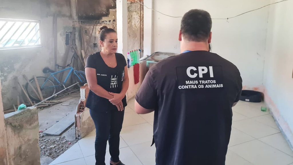 A CPI dos Maus-tratos Contra os Animais, presidida pela deputada Estadual Janete de Sá, esteve nesta quinta-feira (11) em uma diligência no bairro Feu Rosa, na Serra, para apurar uma denúncia de maus-tratos contra um cachorro. O animal, chamado de Skol, ficava acorrentado em um ambiente insalubre, sujo, repleto de fezes e urina.