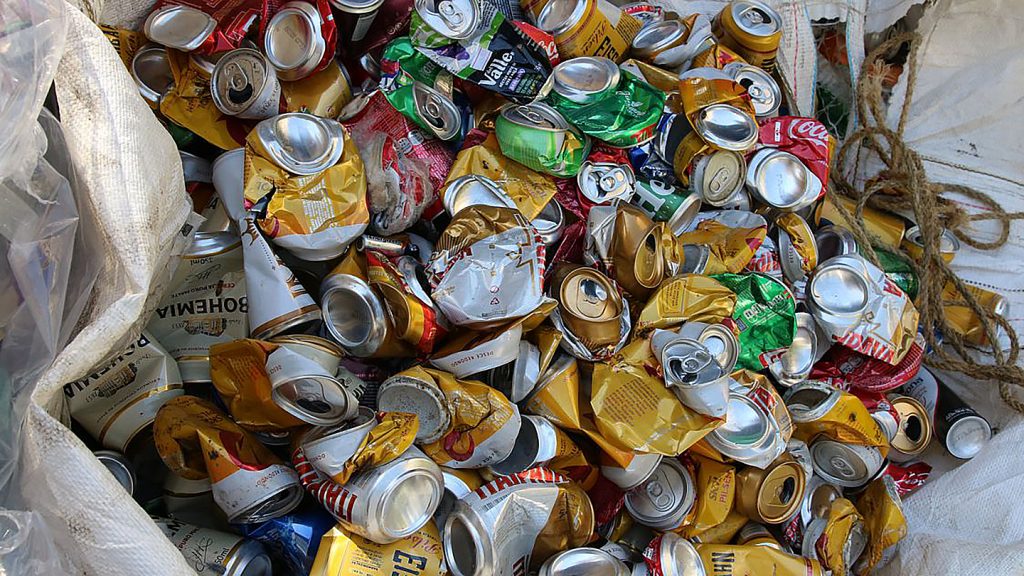 Metais: além de todos os tipos de latas de alumínio, é possível reciclar tampinhas, pregos e parafusos. Atenção: clipes, grampos, canos e esponjas de aço devem ficar de fora.