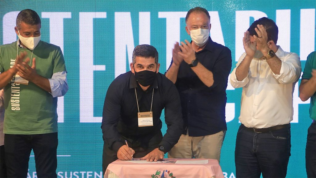 O governador também assinou o decreto de regulamentação do Programa Estadual de Sustentabilidade e apoio aos municípios (Proesam), que é um programa inédito de compra de resultados com repasses de recursos para custeio e investimentos diretos para os municípios, com o objetivo de otimizar a gestão municipal. O programa vai fortalecer as secretarias municipais de meio ambiente, possibilitando a contratação de equipes técnicas, locação de equipamentos, aquisição de combustível para ações de fiscalização, entre outras necessidades do setor ambiental.