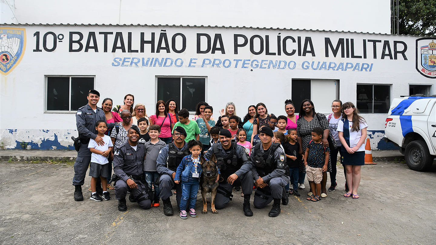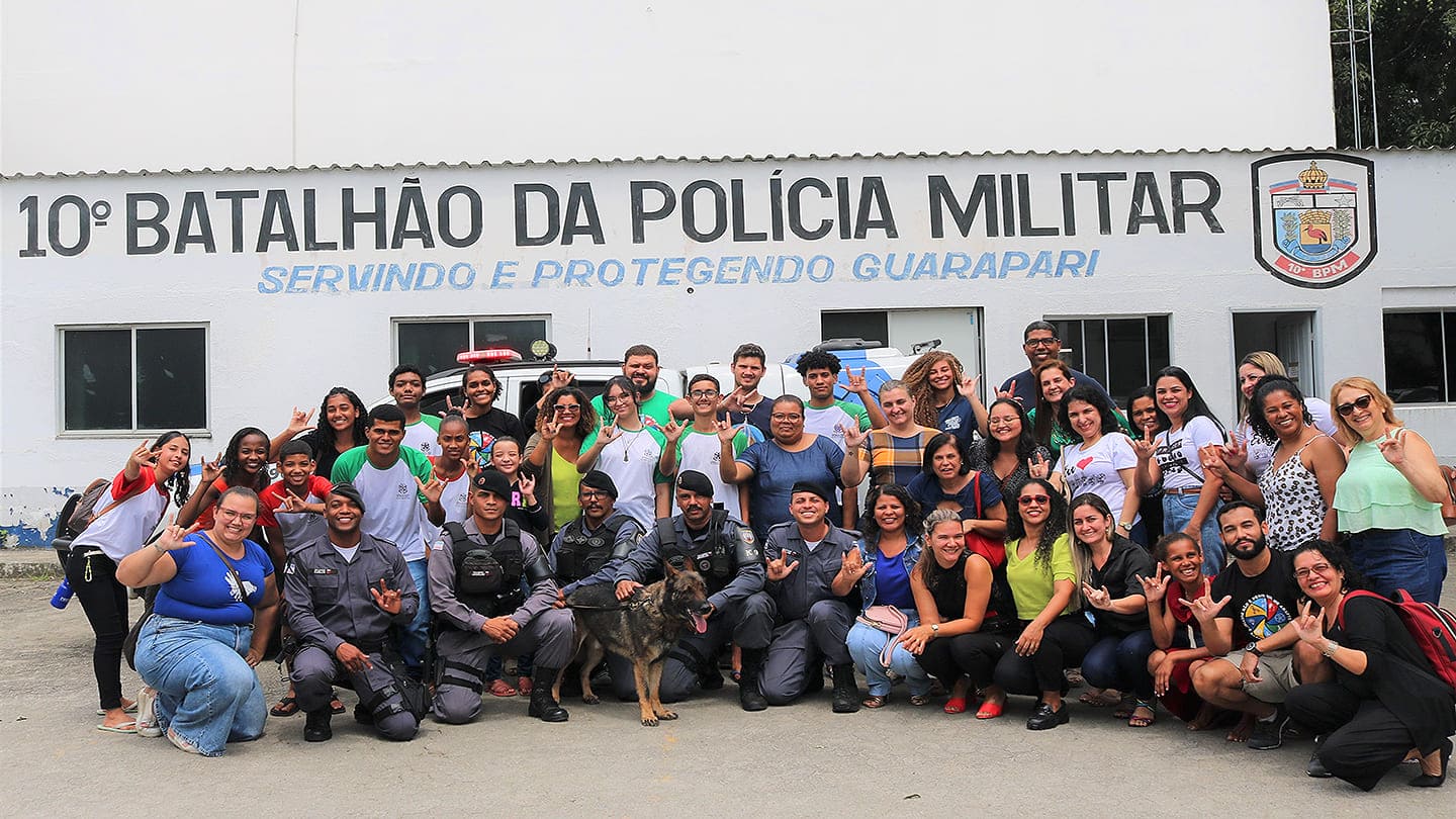 Nesta terça-feira (03), o 10º Batalhão da Polícia Militar em Guarapari recebeu a visita de dois grupos de alunos do ensino público municipal, portadores de deficiências visuais e auditivas, Transtorno do Espectro Autista, altas habilidades e superdotação.
