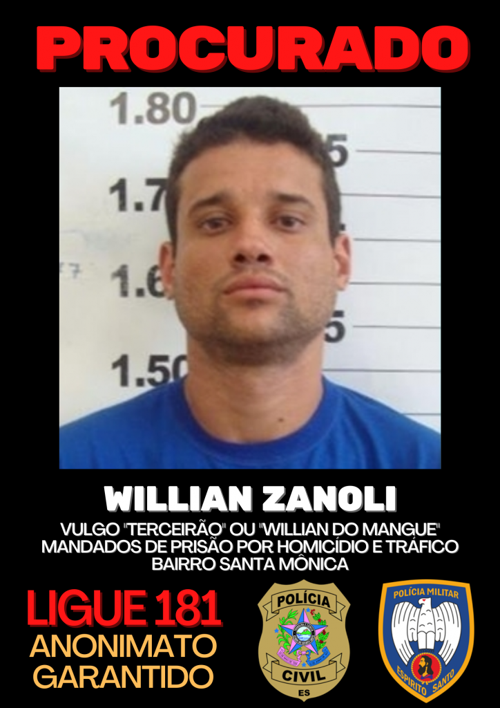Willian Zanoli – vulgo “Terceirão” ou “Willian do Mangue”, do bairro Santa Mônica. Possui mandados de prisão por homicídio e tráfico.