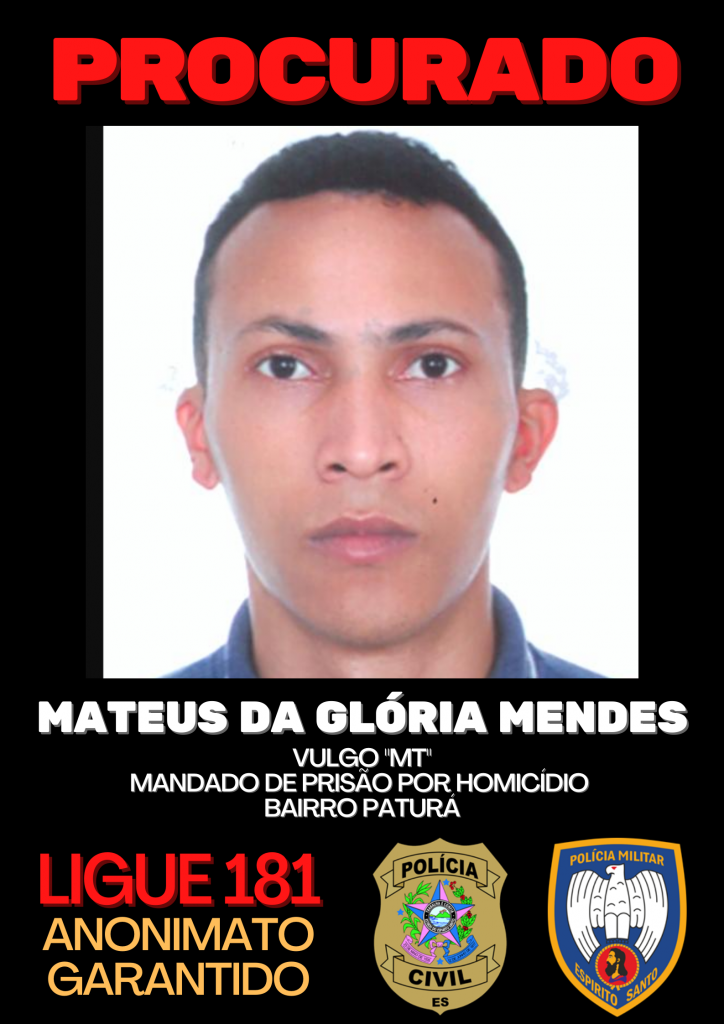 Mateus da Glória Mendesvulgo “MT”, do bairro Paturá. Possui mandado de prisão por homicídio.