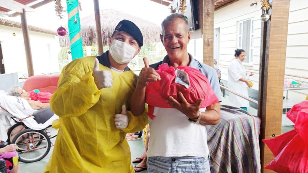 À tarde o destino foi o asilo. “Mesmo com a pandemia viemos fazer a entrega dos presentes, pois é um momento muito esperado por eles”, afirmou Jailza.