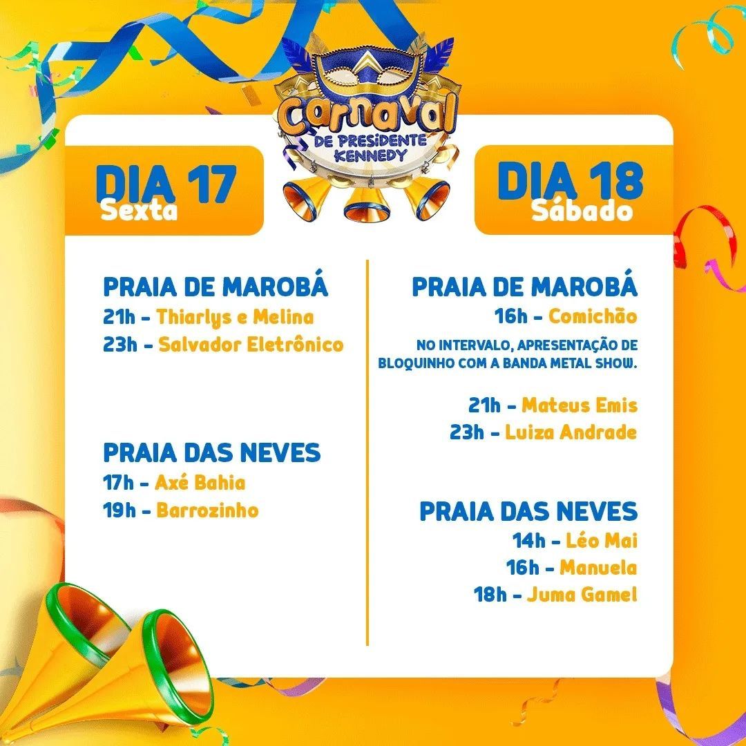 A folia na cidade de Presidente Kennedy começa nesta sexta (17), confira a programação