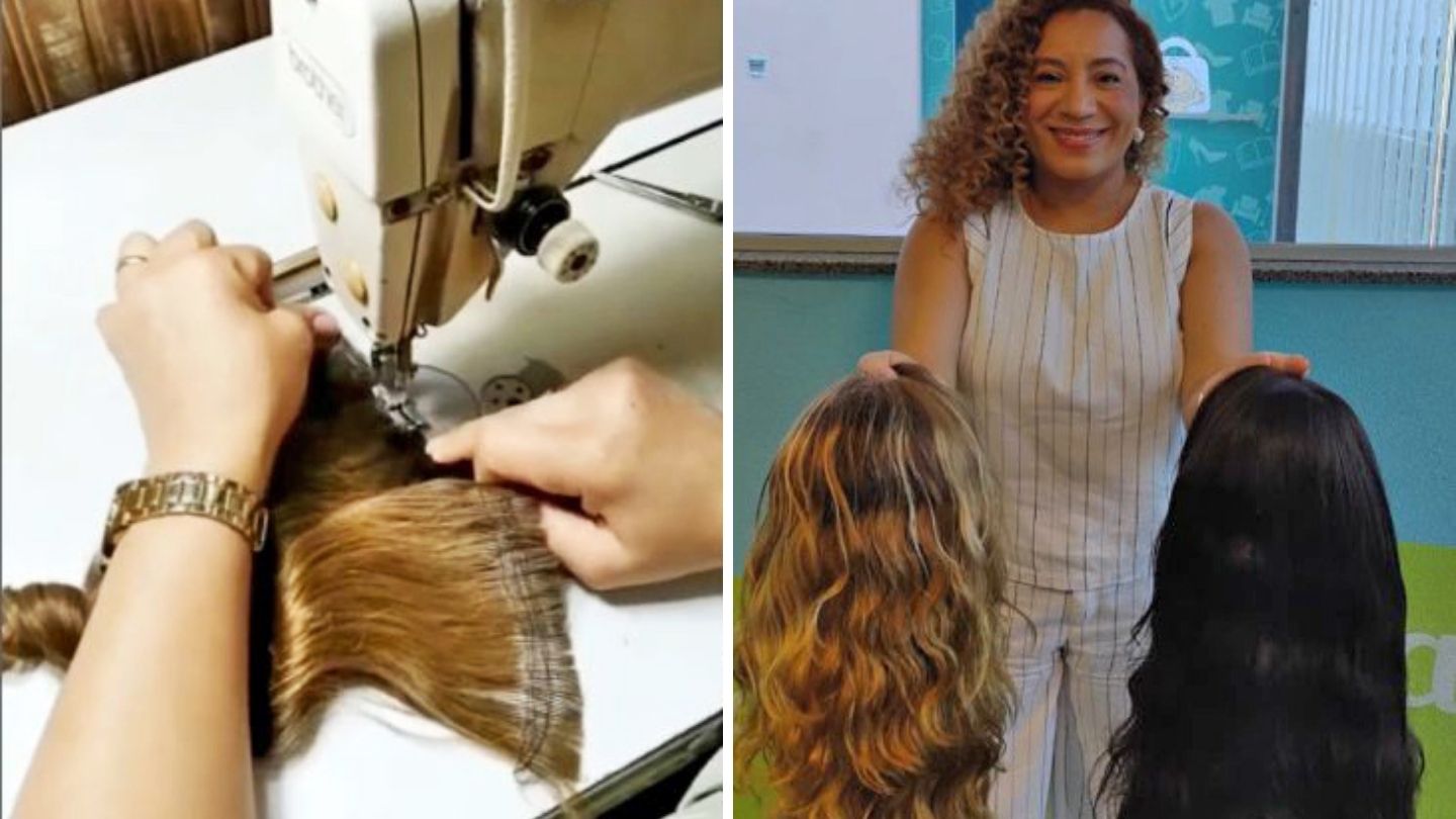 As perucas são produzidas a partir de fotos enviadas pelas famílias ou pela própria Acacci, respeitando características como comprimento, cor e estilo do cabelo. Núbia explica que não recebe doações diretamente. “Quem recebe as doações de cabelo é a Acacci, que depois me repassa. A partir disso, eu faço a peruca de acordo com a foto da criança ou do adolescente”, diz.