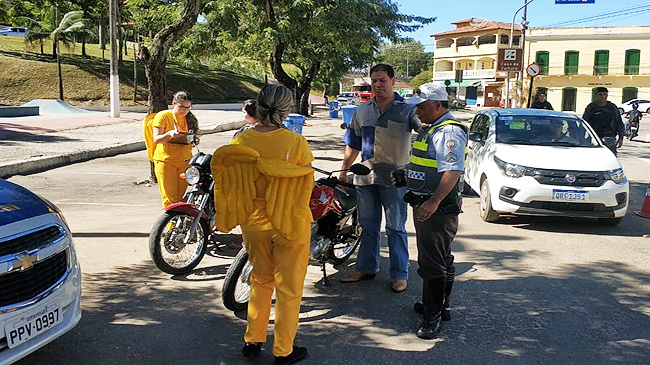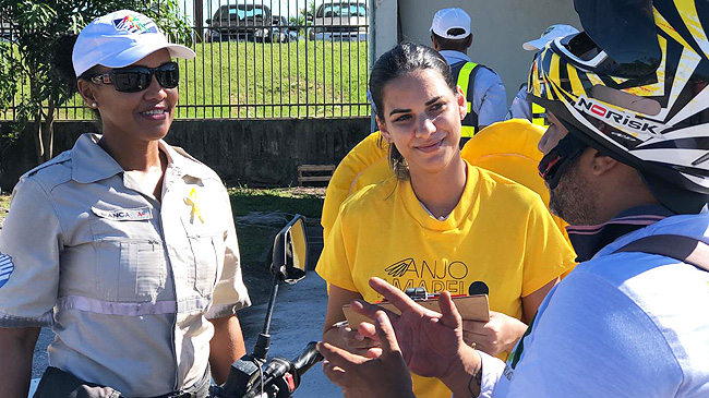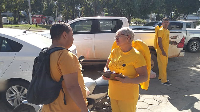 Na ação, agentes educativos customizados de anjos, policias, guardas e agentes de trânsito interagiram com os condutores, em 67 pontos de grande circulação de motos nas cidades, a partir de um questionário sobre as condições dos itens obrigatórios, como o capacete; a manutenção do veículo; sobre o comportamento de cada um no trânsito, tendo em vista as imprudências e imperícias como grandes causadores de acidentes, e, ao final, deixaram uma mensagem educativa para as pessoas. Em alguns desses pontos, também foram distribuídos informativos com orientações para os motociclistas. As blitzes educativas encerraram as ações do Maio Amarelo no Estado.