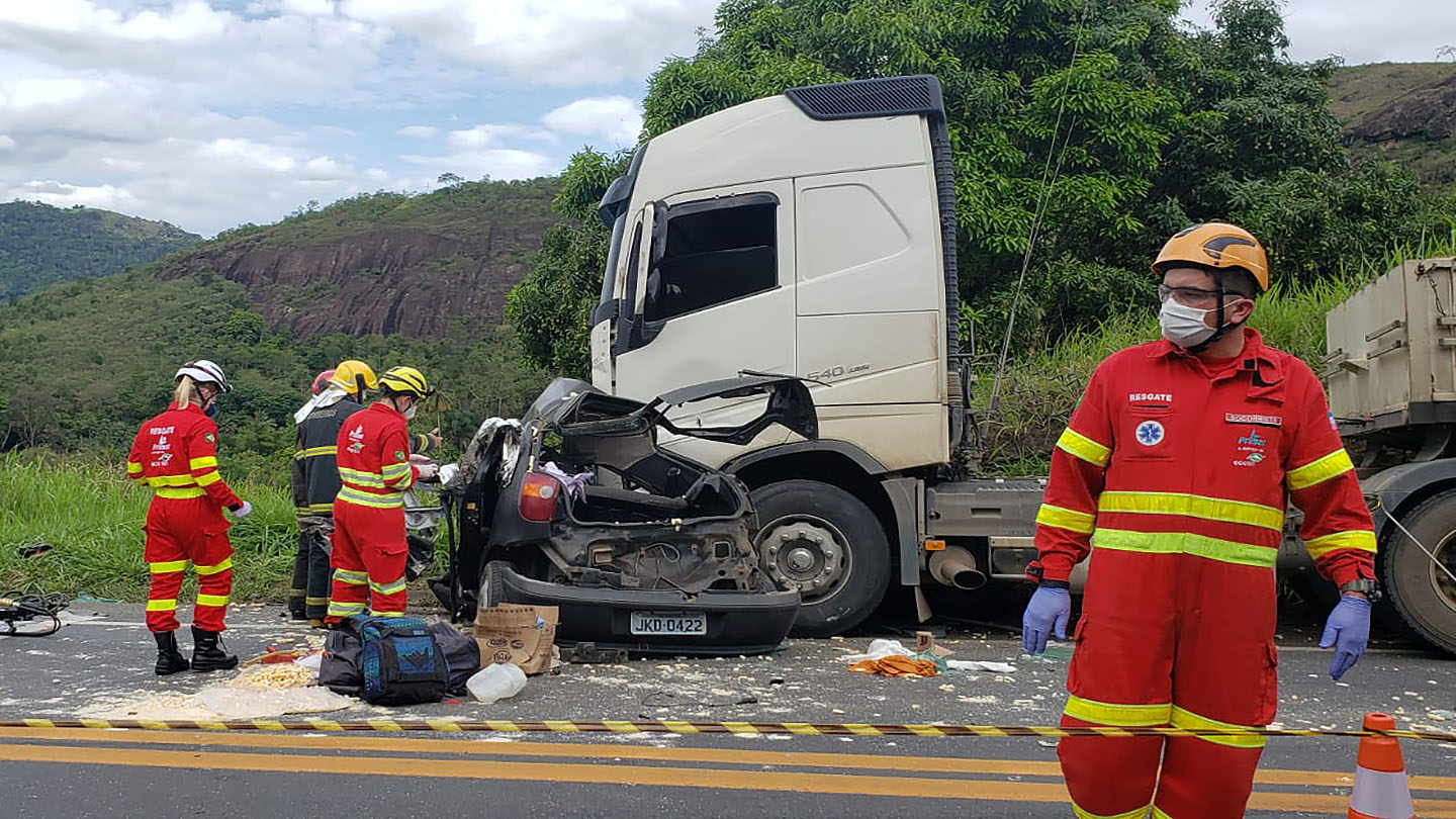 Um grave acidente envolvendo um Palio e duas carretas deixou três pessoas mortas na altura do quilômetro 208, em João Neiva, região norte do Espírito Santo.