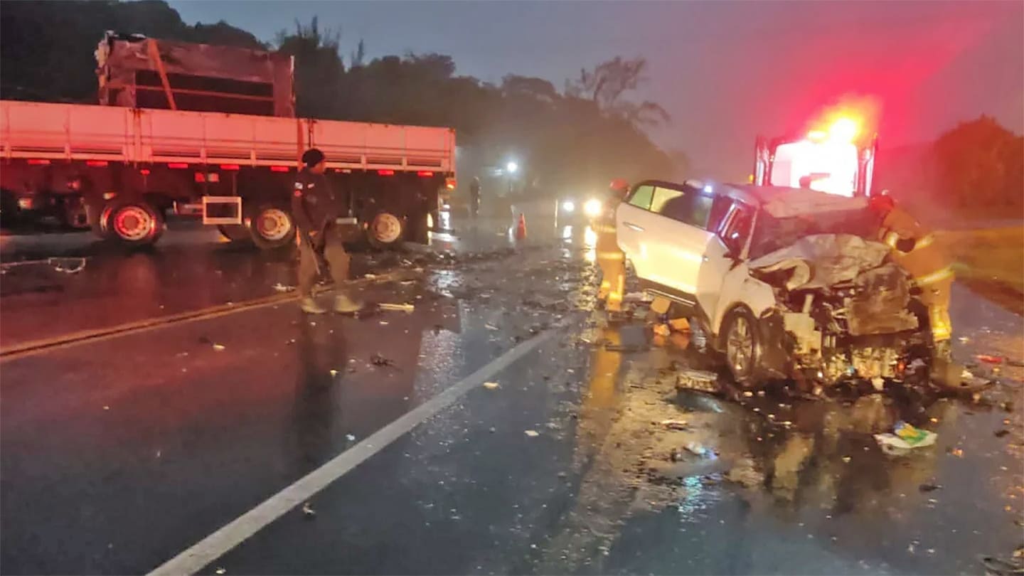 O estado de saúde do motorista que conduzia a carreta não foi divulgado.