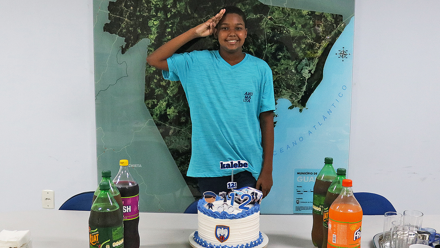 Na tarde desta terça-feira (22), Kalebe comemorou seu aniversário de 12 anos no 10º Batalhão da Polícia Militar, em Guarapari.