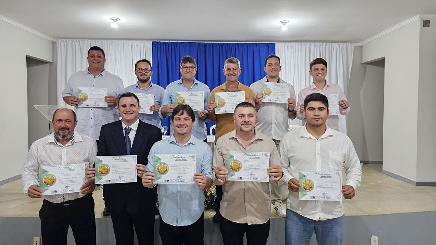 O prefeito eleito de Alfredo Chaves, Hugo Luiz Pícoli Meneghel (PP), e o vice, Cleber Bianchi (Clebinho), foram diplomados pela Justiça Eleitoral na tarde desta sexta-feira, 13 de dezembro, em cerimônia realizada no auditório do Centro de Referência da Assistência Social (Cras). No mesmo evento, os vereadores eleitos e os suplentes também receberam seus diplomas.
