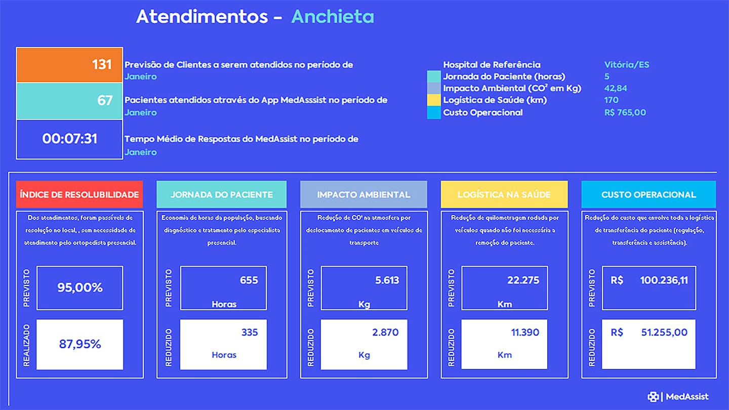 Conforme informações da empresa que presta o serviço, com o sistema de telelemedicina, o custo operacional, que envolve toda a logística de transferência do paciente, como regulação, transferência e assistência, entre outros cuidados, também já mostra uma redução importante. Foram economizados R$ 51,25 e a meta é chegar a economia de R$ 100.236,11 até o dia 31 de janeiro.