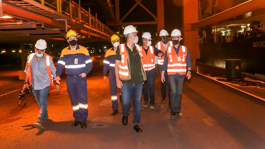 Acompanhado do gerente-geral de Operações da Samarco, Sérgio Mileipe, o ministro esteve nas instalações do Complexo de Ubu e visitou a usina 4 e o porto, onde a agenda foi encerrada.