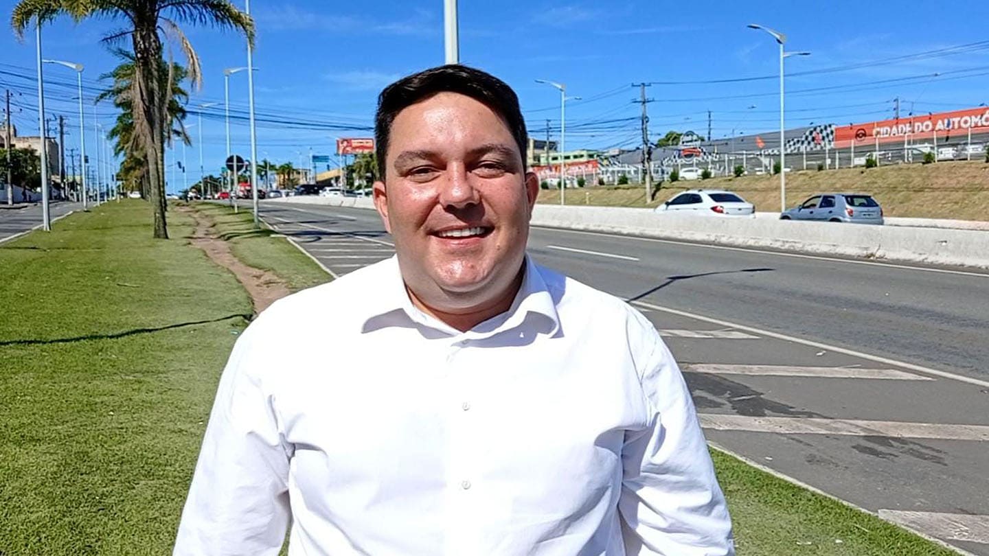 O deputado Bruno Lamas paga o pedágio com cartão de débito, por aproximação, proposta iniciada no seu mandato.