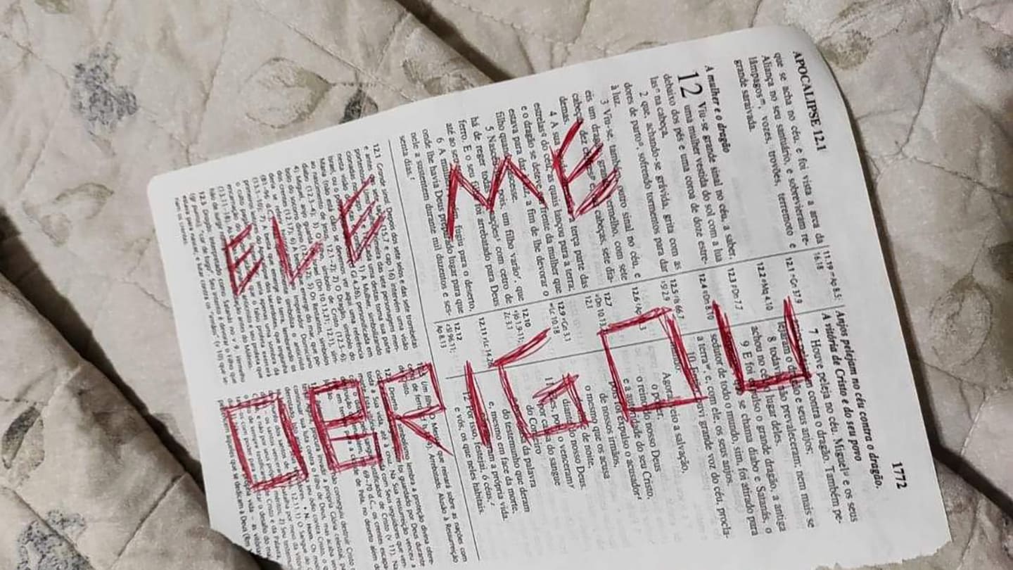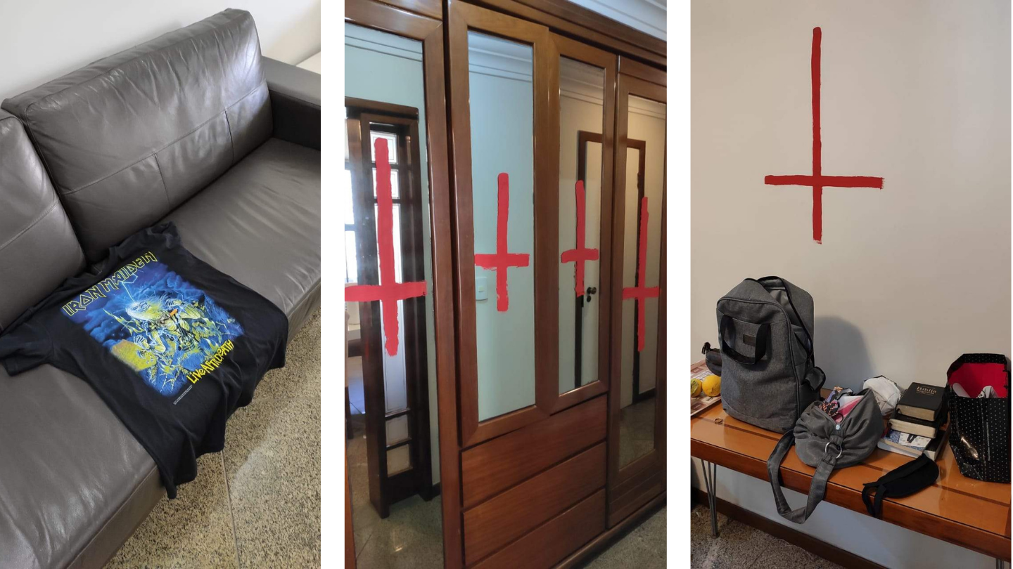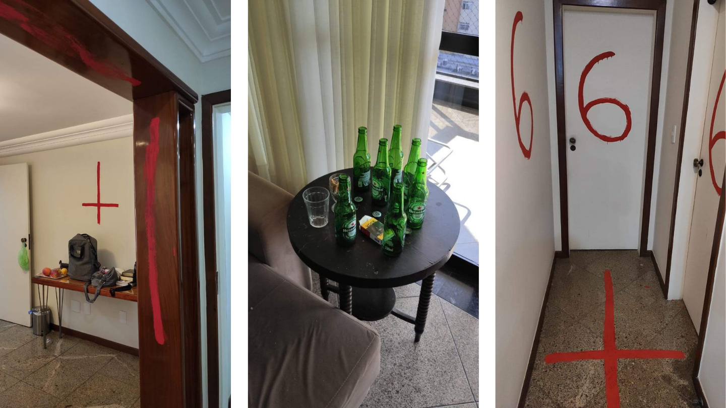 Na cena do crime, a polícia encontrou páginas da bíblica arrancadas, chão pintados, garrafas de bebida espalhadas, paredes pintadas, além de Guilherme ter escrito versículos bíblicos e espalhar pelo apartamento. Cenas estarrecedoras.