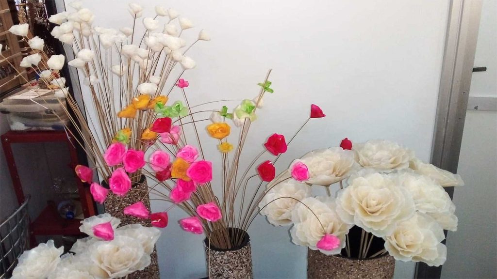 Para a Fenearte, a itapemirinense já está produzindo as peças de artesanato que vai expor no evento, como flores de escamas de peixe, porta-retratos, porta-joias, chaveiros, vasos móbiles, bibelôs e porta-chaves.