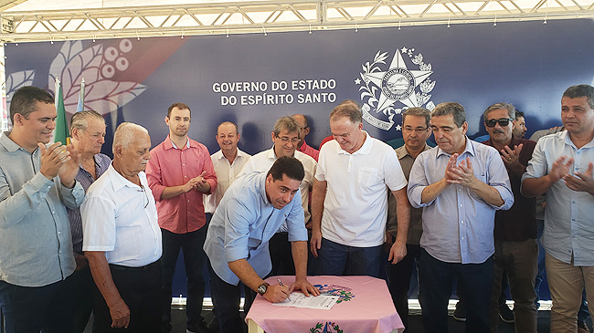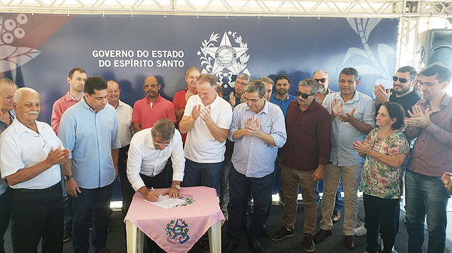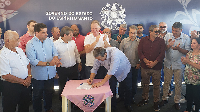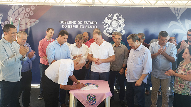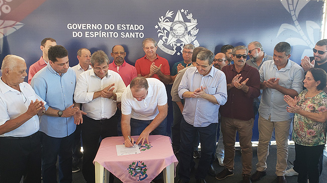 O governador do Estado, Renato Casagrande, o secretário de Estado de Saneamento, Habitação e Desenvolvimento Urbano (SEDURB), Marcus Vicente, e o prefeito de Piúma, professor Ricardo Costa assinaram na manhã de hoje (10) a Ordem de Serviço para Construção do Muro de Contenção e Recuperação de Calçadas e Ciclovia da Av. José de Vargas Scherrer – Av. Beira Mar.