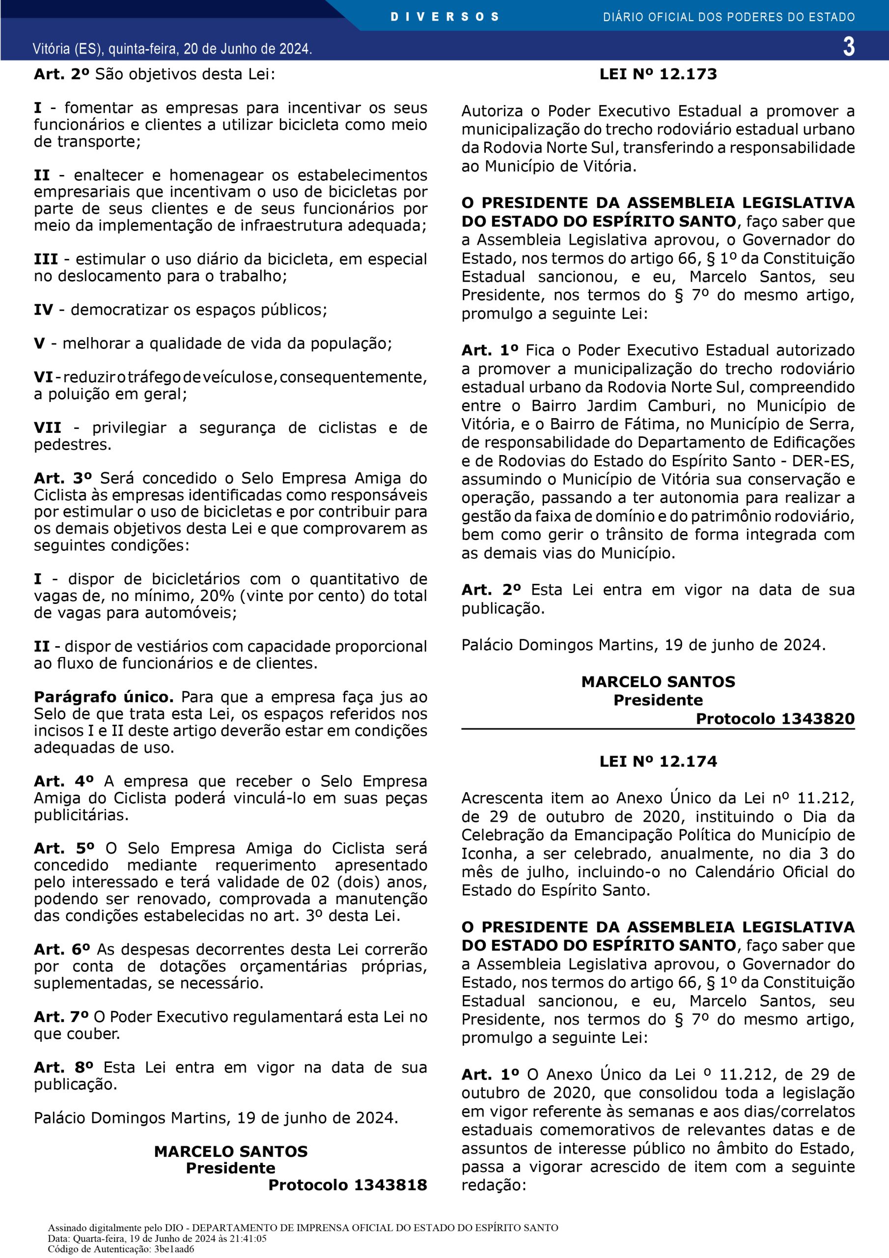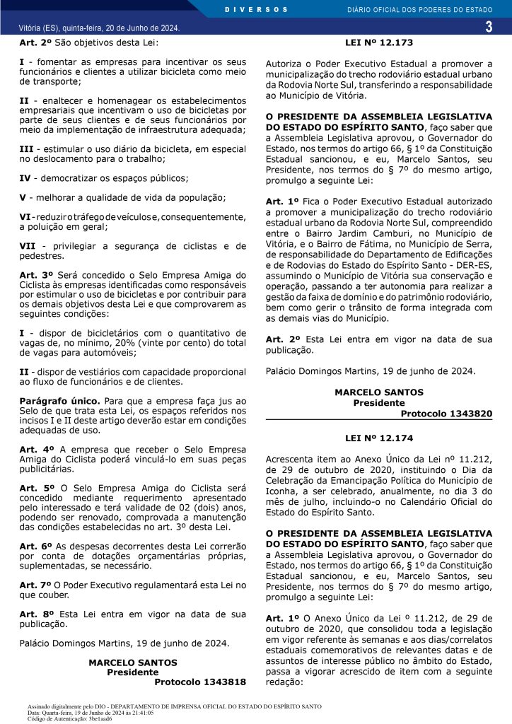 Com a promulgação, realizada pelo presidente da Assembleia Legislativa, deputado Marcelo Santos, na presença de Gandini e do presidente da Associação Comunitária de Jardim Camburi, Bruno Malias, a rodovia – que até então era de responsabilidade do Departamento de Edificações e de Rodovias do Estado do Espírito Santo (DER-ES), uma autarquia estadual – passa para a gestão da Prefeitura de Vitória, que assumiu as responsabilidades de conservação e operação da via, assim como a gestão do trânsito.