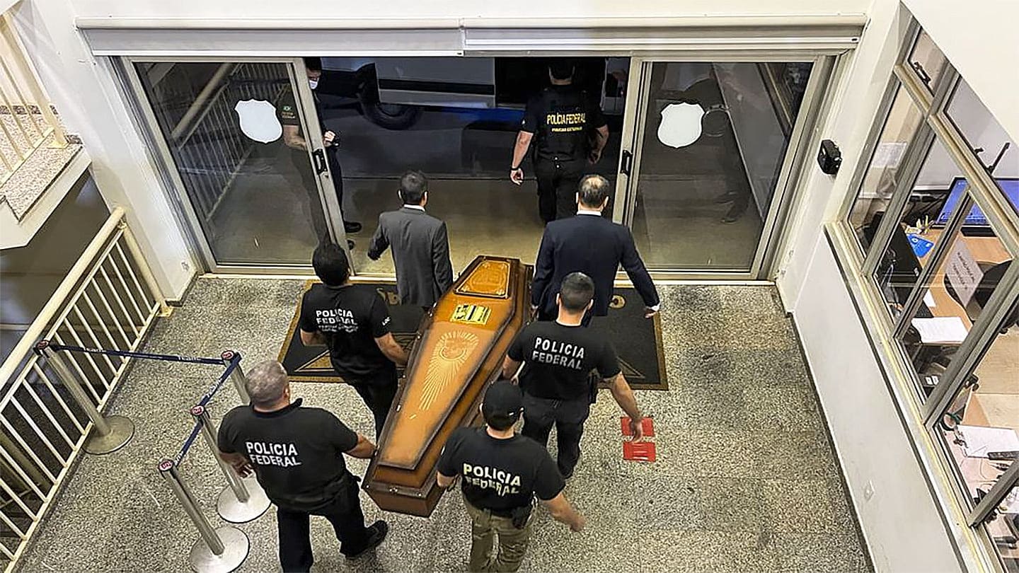 O avião da Polícia Federal (PF) que transportou os remanescentes humanos encontrados durante as buscas pelo indigenista Bruno Araújo Pereira e o jornalista inglês Dom Phillips pousou, por volta das 18h30, no Aeroporto de Brasília. O material está sendo levado para o Instituto Nacional de Criminalística, onde será periciado para confirmação da identidade.