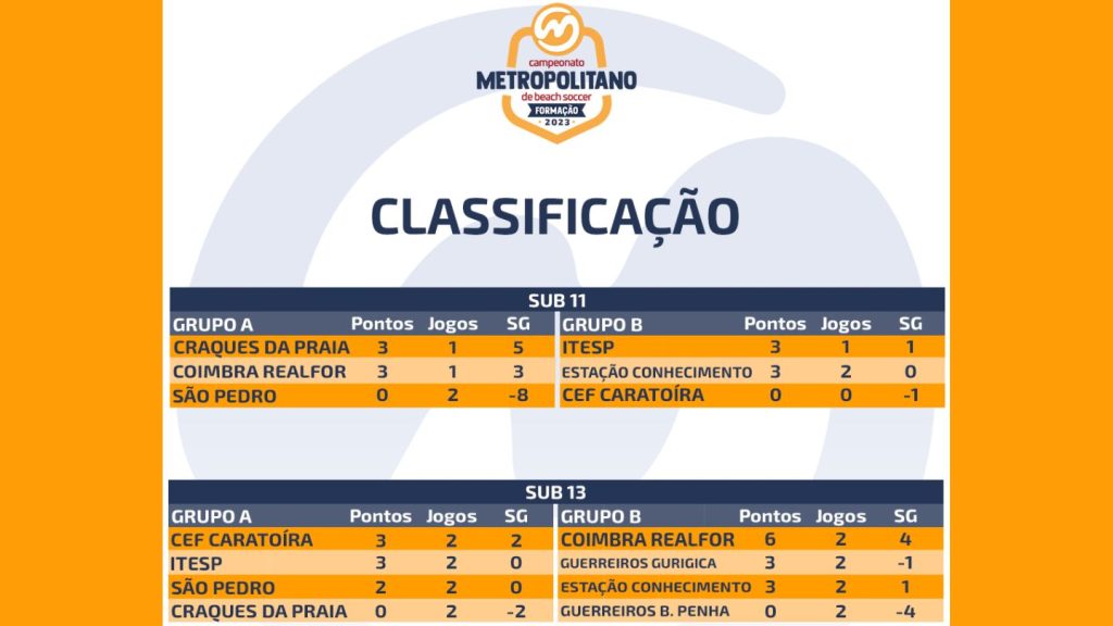 CEF Caratoíra venceu o Estação Conhecimento, pelo grupo B, por 9 a 0. Outra goleada também foi aplicada pelo Craques da Praia, que ganhou o mesmo Estação por 11 a 2. O time da Praia do Suá enfrenta Caratoíra no próximo sábado, em jogo que vale a vaga na final.
