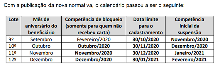 O Ministério da Cidadania ampliou em dois meses o cronograma para que beneficiários do Benefício de Prestação Continuada (BPC) se inscrevam no Cadastro Único. O objetivo é alcançar 244 mil pessoas que estariam nos quatro últimos grupos do calendário original, sendo 110 mil idosos e 134 mil portadores de deficiência. Apesar do número, segundo o Ministério da Cidadania, 93% das pessoas que recebem o BPC já estão cadastradas.