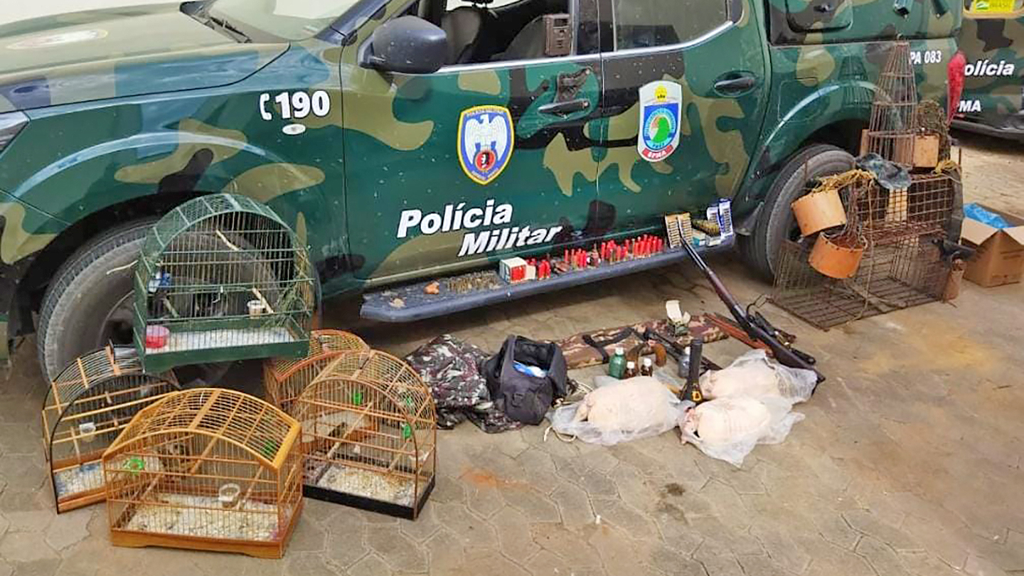 Durante a fiscalização no local a equipe encontrou duas armas de fogo irregulares, um rifle calibre 38 e um garruchão calibre 32, além de 284 munições de calibres variados, uma luneta, três tatus abatidos, oito armadilhas, uma câmera com sensor de movimento, cinco pássaros silvestres mantidos em cativeiro sem autorização dos órgãos competentes, seis pios, recipientes com pólvora, chumbo e espoletas, dois coldres, um cinto tático, uma rede de espera e diversos petrechos para caça e para recarga.