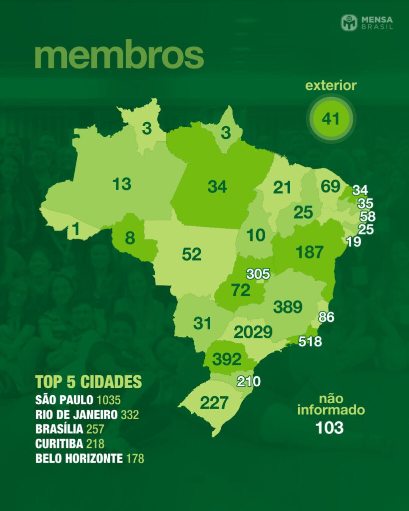 Estudos mostram, por outro lado, que os superdotados são 5% da população brasileira, ou seja: 10,7 milhões de indivíduos. “Conhecer os superdotados brasileiros ainda é um desafio enorme. Com os números do Censo Escolar, vemos que há uma grande lacuna no interior do País, com mais de 2,8 mil municípios sem identificação de superdotados em idade escolar”, aponta Carlos Eduardo Fonseca, presidente da Mensa Brasil. “O trabalho de organizações como a nossa ajuda a identificar os superdotados no País, na tentativa de evidenciar nosso público e contribuir na construção de políticas públicas”, acrescenta.