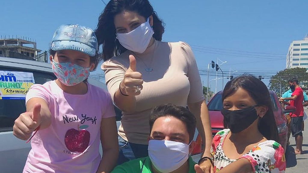 Para isso, reuniu aliados em frente a uma faculdade de Laranjeiras, na Serra, e colocou o jingle “Diga, sim, prefeito é Bruno 40”, preparado pelo marqueteiro Jorge Oliveira, o Jorge Arapiraca, para tocar nas ruas da cidade.