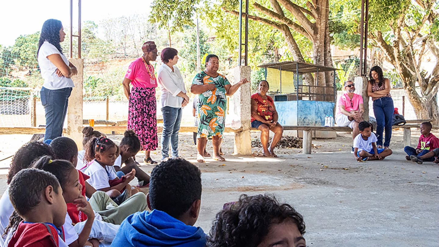 Com proposta parecida, porém um público-alvo diferente, também está em curso o Caxambu na Escola. A cada edição, esse projeto leva às crianças do quilombo – todos estudantes da EMEB Monte Alegre – o conhecimento sobre a tradição do Caxambu, cultivada e mantida graças às mestras do grupo Santa Cruz, certificado como Patrimônio Imaterial do Brasil.