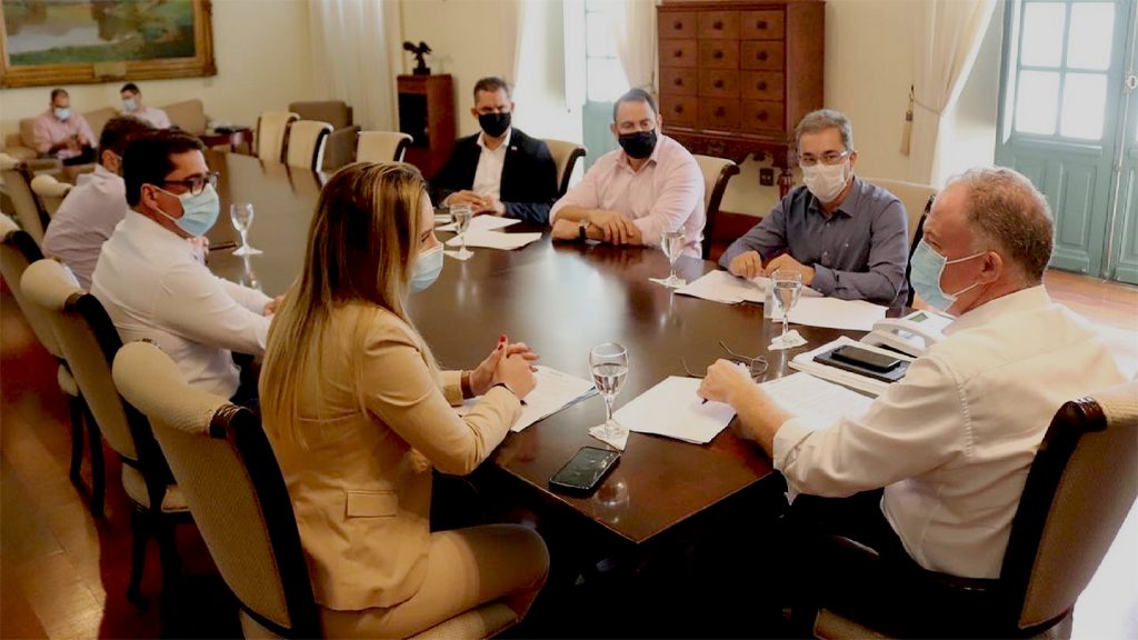 O governador Renato Casagrande se reuniu com o deputado estadual Marcelo Santos (presidente da Comissão de Infraestrutura da Assembleia), os deputados federais Da Vitória e Ted Conti (Presidente da Comissão Externa de Fiscalização da BR 101 da Câmara dos Deputados), a presidente da Findes, Cris Samorini e os Secretários de Estado Gilson Daniel (Governo) e Fábio Damasceno (Mobilidade e Infraestrutura).