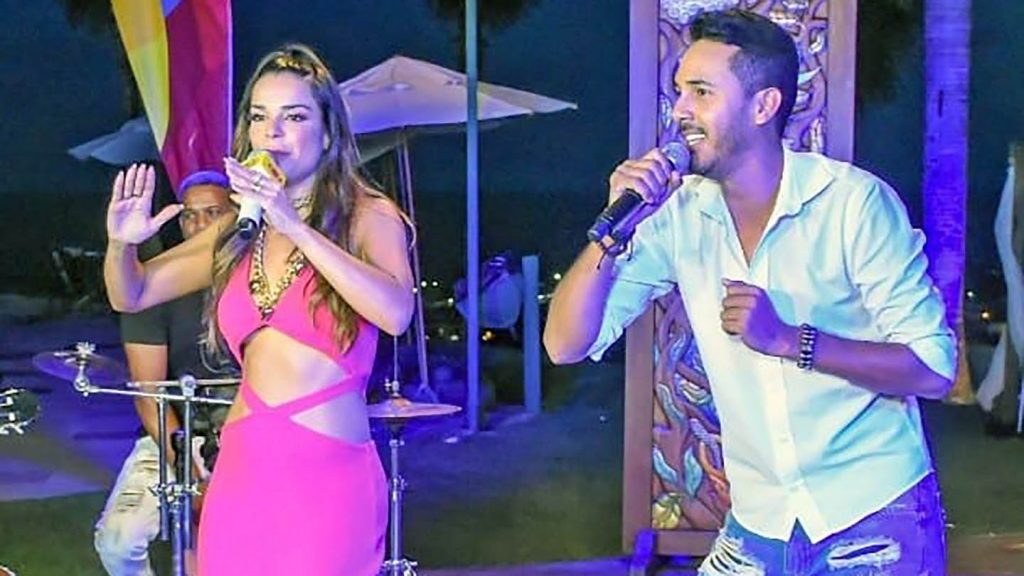 Marcos Val com a cantora Mari Antunes interpretando um clássico do axé music.