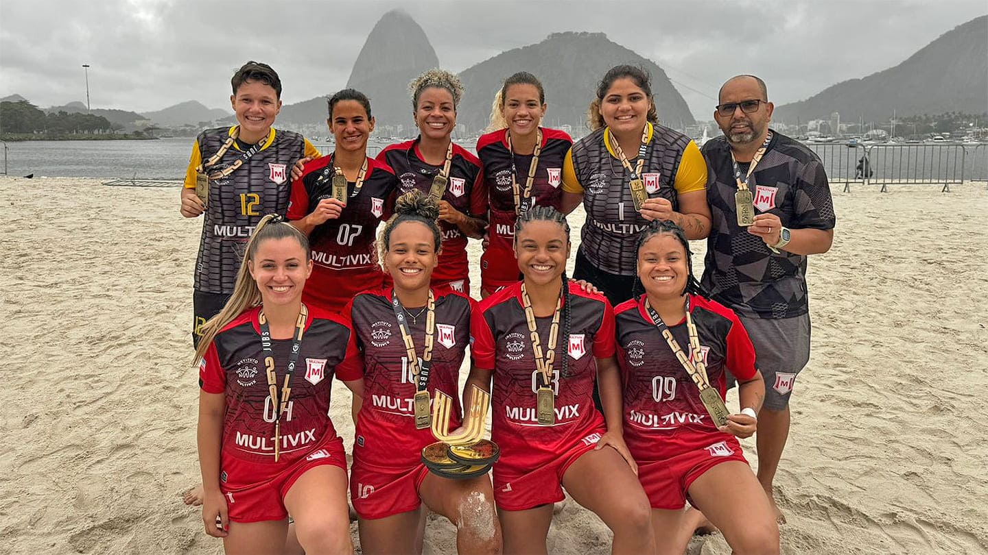 Já o título no beach soccer veio após uma excelente campanha, com cinco vitórias em cinco jogos. Na final, a vitória foi sobre a equipe da Unit (SE), por 6 a 3. Capitã e artilheira da equipe, Silvana Neves foi o grande destaque do time capixaba, que contava com alunas da Multivix.