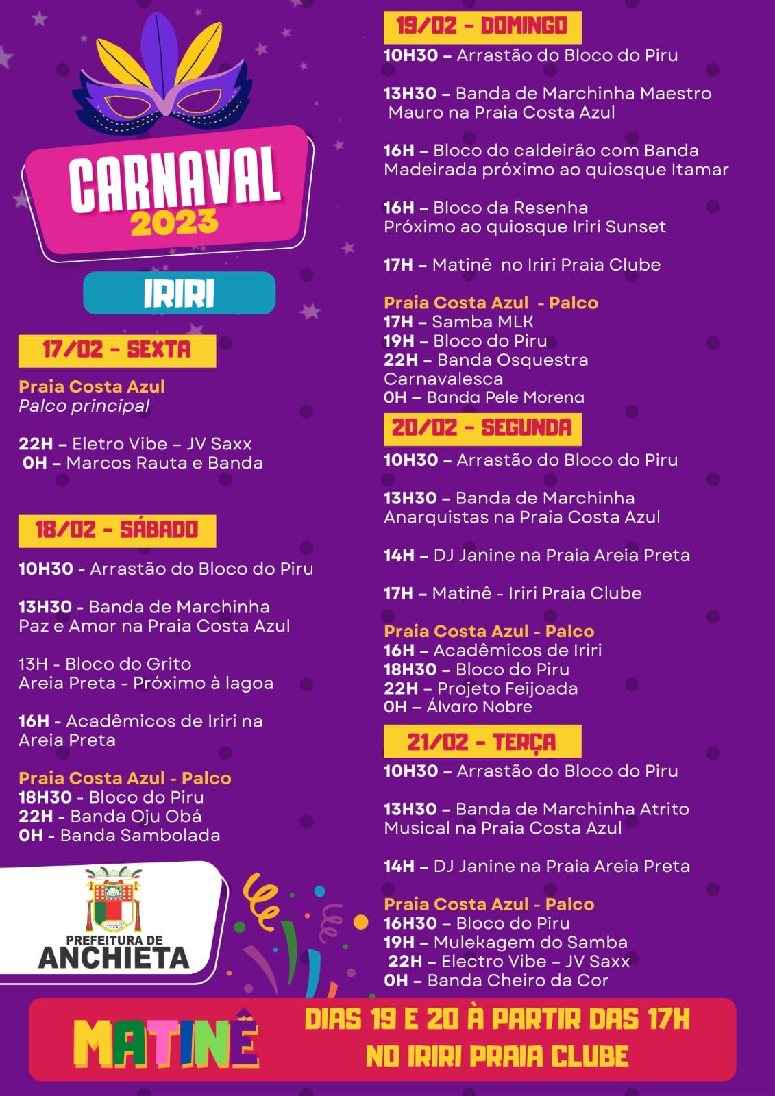 CARNAVAL 2023 EM ANCHIETA: confira a programação