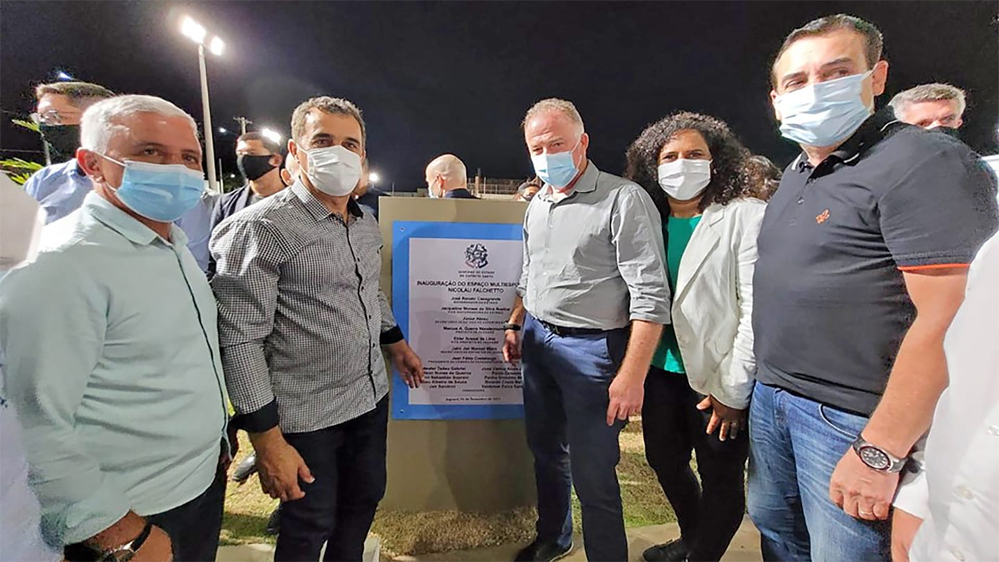 O governador do Estado, Renato Casagrande, esteve, na noite dessa sexta-feira (24), em Jaguaré, microrregião Nordeste, para a inauguração do Espaço Multiesportivo Nicolau Falchetto, no Centro do município. Casagrande também anunciou novos investimentos em diversas áreas. A agenda oficial incluiu ainda visitas a obras e a participação no encontro do consórcio público PRODNORTE (Programa de Desenvolvimento Regional Sustentável do Extremo Norte Capixaba).
