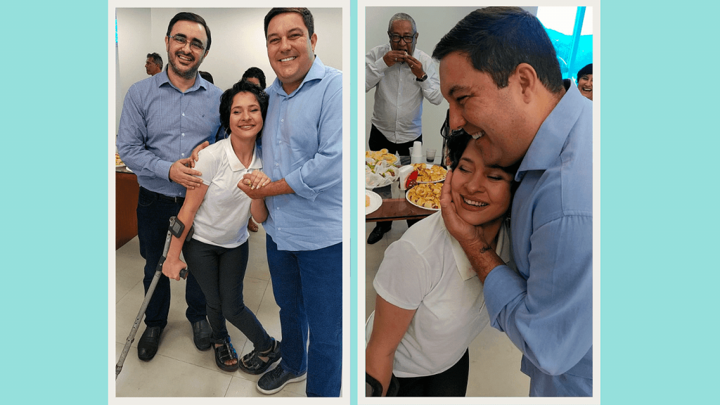 O presidente da Federação das Apaes, Vanderson Gaburo, Paulinha e Bruno Lamas, que aprovou projeto para garantir o atendimento às pessoas com deficiência e valoriza o trabalho das instituições filantrópicas.