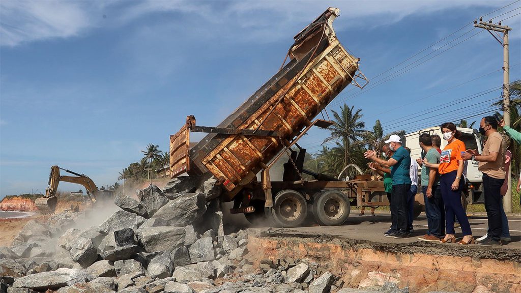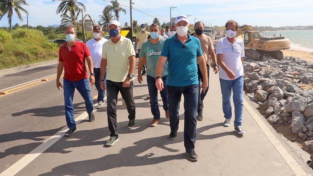 A agenda oficial contou com uma visita às obras de contenção da erosão e restauração da região costeira da Praia de Meaípe, em Guarapari. A intervenção é uma demanda antiga da região que, há anos, sofre com processos erosivos e o avanço do mar sobre a faixa de areia. Estão sendo investidos R$ 67 milhões nas obras que são executadas pelo DER-ES.