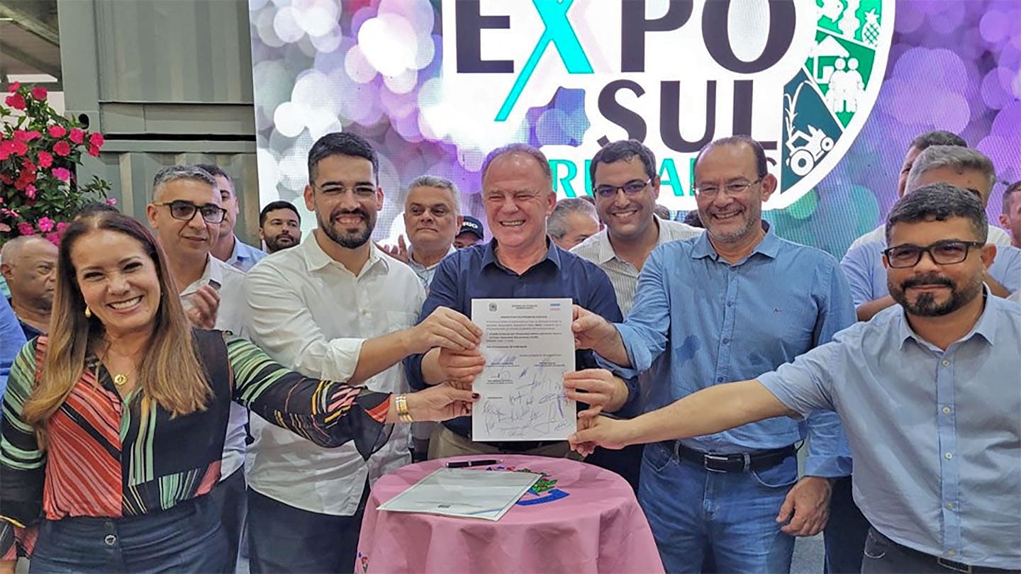 O governador do Estado, Renato Casagrande, participou nesta quinta-feira (04), da abertura oficial da feira Exposul Rural 2023, que acontece até o próximo domingo (07) no novo Centro de Eventos do Parque de Exposições de Cachoeiro de Itapemirim. Na ocasião foi assinada a Ordem de Serviço para obras de pavimentação asfáltica, nos trechos Rodovia do Frade x Santa Izabel (Alto da Gruta) x Rodovia ES-485.