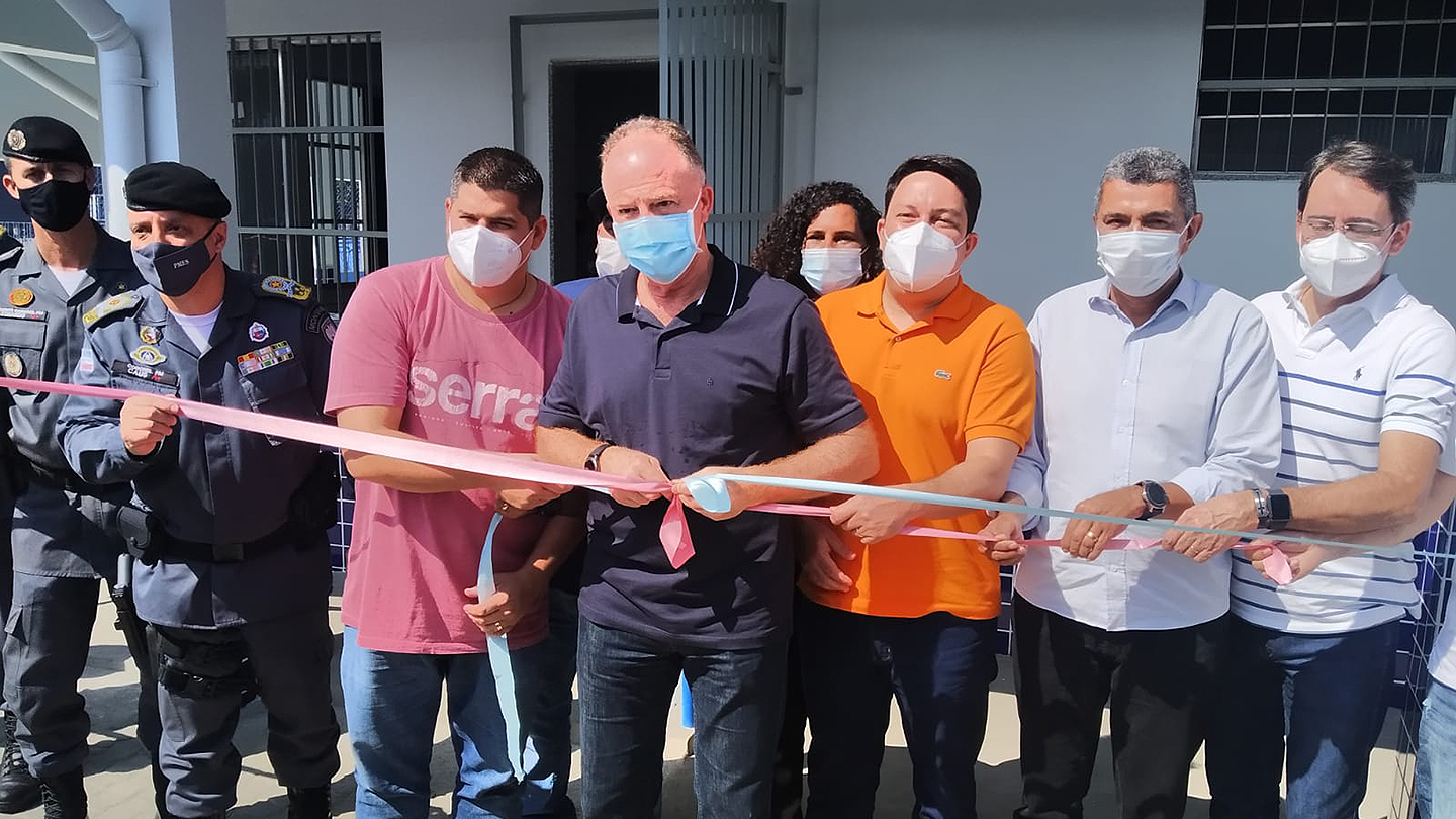 Pela manhã, Casagrande inaugurou a nova sede da 3ª Cia do 6º BPM, em Barcelona, que foi ampliada com a construção de novas salas e a estrutura foi toda reformada, com a substituição do telhado e da rede elétrica e hidráulica, além de melhorias no muro e portões.