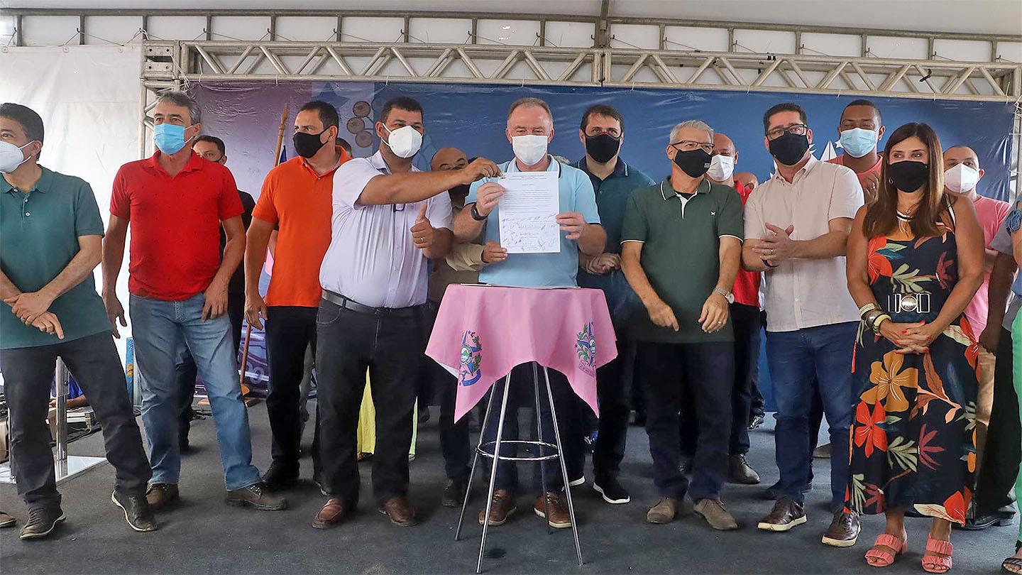 Durante a agenda em Conceição da Barra, o governador realizou a assinatura da Ordem de Serviço para início das obras de calçamento rural para a comunidade Bela Vista. O investimento é de R$ 847.115,32, em uma parceria do Governo do Estado, por meio da Secretaria da Agricultura, Abastecimento, Aquicultura e Pesca (Seag), e o Município, que ficará encarregado da instalação da pavimentação.