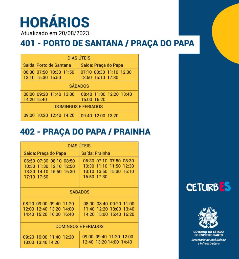 O trajeto entre a Praça do Papa e a Prainha será realizado pela linha 402 em aproximadamente 10 minutos, enquanto a estimativa para o percurso até Porto de Santana é de cerca de 40 minutos, realizado pela linha 401. Os usuários do aplicativo ÔnibusGV já conseguem conferir os horários de partida das linhas pelo celular.