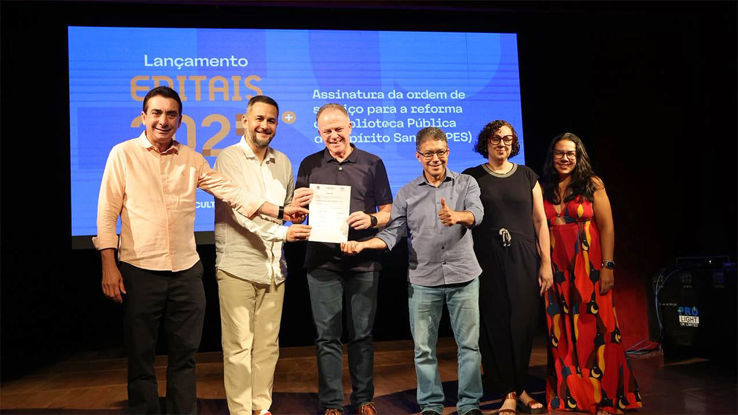 O Governo do Estado, por meio da Secretaria da Cultura (Secult), lançou, nesta sexta-feira (19), no Theatro Carlos Gomes, Centro de Vitória, os Editais da Cultura 2025, com o maior investimento da história: R$ 34,090 milhões. Durante o evento, o governador do Estado, Renato Casagrande, assinou a ordem de serviço para a reforma da Biblioteca Pública do Espírito Santo.
