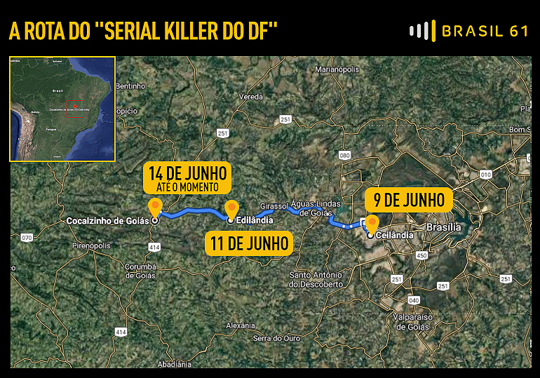 Uma precisa linha do tempo ainda está sendo traçada por diferentes investigadores, mas os casos que motivaram a operação em andamento começaram, ao que tudo indica, em abril. Ele é o apontado como autor de um roubo seguido de estupro, em Sol Nascente, Região Administrativa da periferia do Distrito Federal. Nos meses seguintes, Lázaro ainda fez uma família refém na mesma cidade e cometeu um dos crimes mais bárbaros, o assassinato de um casal e dois filhos, no Incra 9, em Ceilândia (DF).