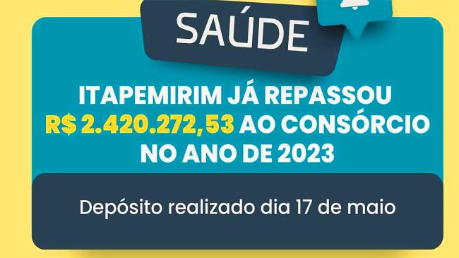 Prefeitura de Itapemirim já repassou R$ 2.420.272,53 ao consórcio de saúde em 2023