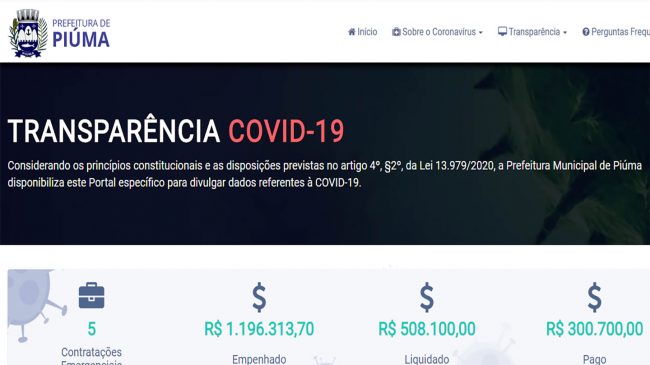 COVID-19 | Prefeitura de Piúma reformula site oficial com dados do Coronavírus