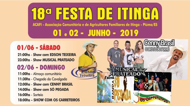 Piúma. Festa da Comunidade de Itinga foi adiada para os dias 01 e 02 de junho