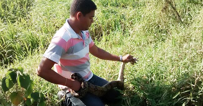 Servidores da Secretaria de Meio Ambiente resgatam jiboia em Itapemirim