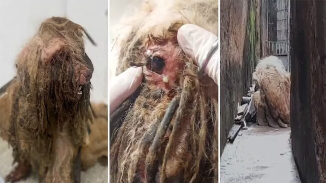 Cão resgatado em péssimas condições tem 2,9 kg de pelos removidos