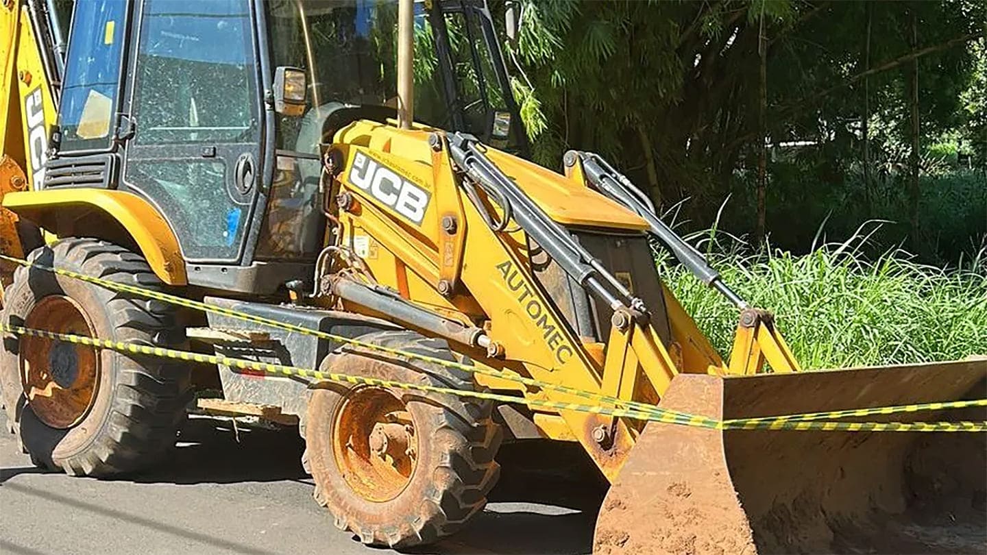 Nas imagens, é possível ver o momento do atropelamento e quando a vítima fica imóvel no chão depois de ser atingida várias vezes pela concha da retroescavadeira.