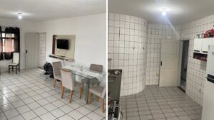 Características do imóvel: 03 quartos, sendo 1 suíte, sala de estar e sala de jantar, TV Smart, banheiro social, varandas amplas, cozinha completa com armário, área de serviço com tanque, 02 vagas de garagem, com excelente localização, próximo a supermercado, padaria, bares e restaurantes e a praia.