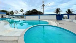 Aluga-se apartamento com piscina, de frente para a praia, localizado no Balneário Monte Aghá II, para temporada, final de semana, feriados, férias de julho e verão. Contato: (28) 9 9939-2752.