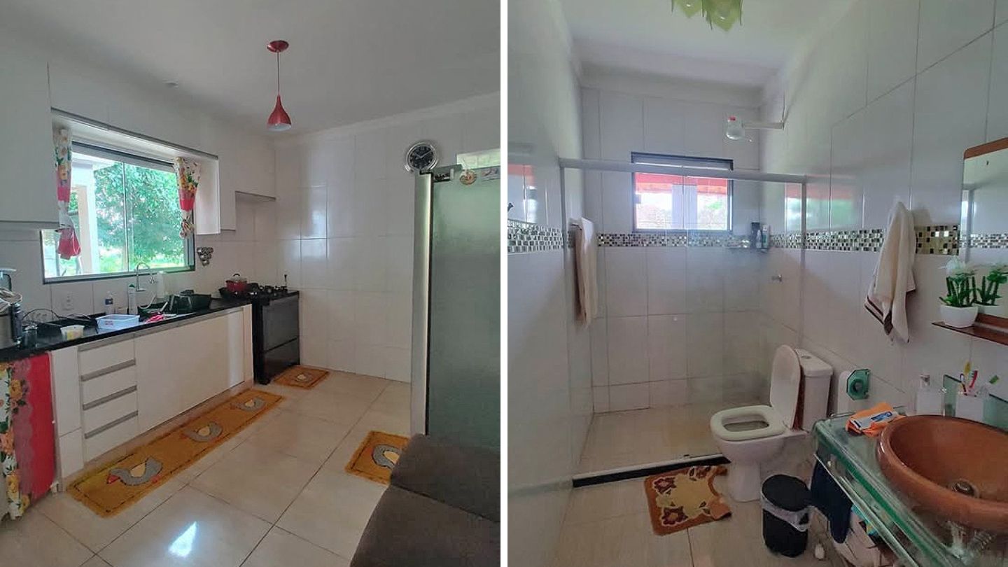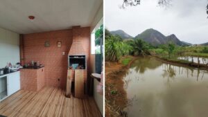 Área total: 3.700 m². Casa nova com 3 quartos, área gourmet com fogão a lenha, garagem coberta, riquíssima em água: 2 lagoas, poço artesiano e rio na propriedade, local tranquilo, apenas 1 km do asfalto, fácil acesso. Valor: R$ 800 mil. Aceita casa em Guarapari como parte do pagamento (até R$ 400 mil). Contato: (27) 9 9707-4501 (Oscar Marques)